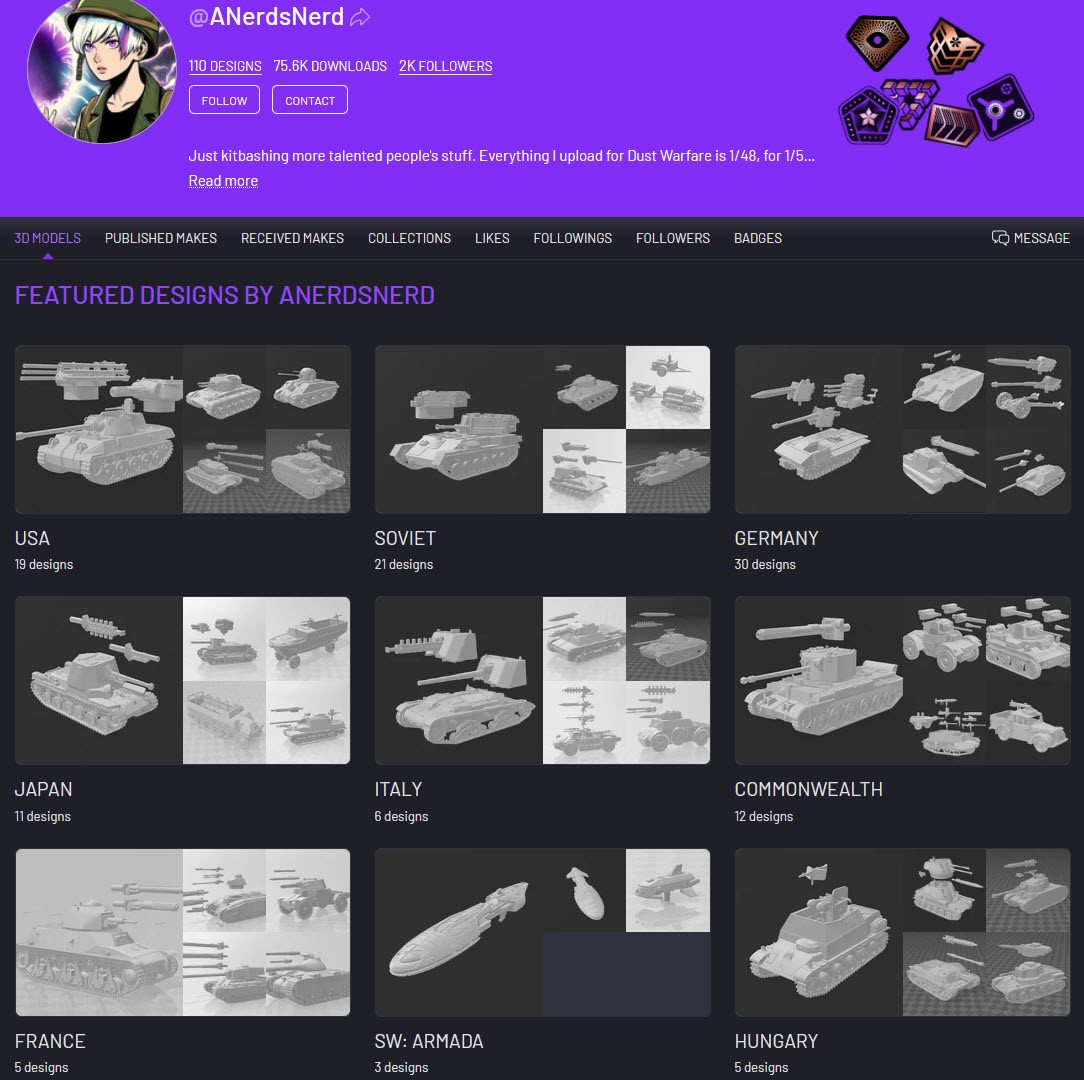 Amazing, prolific, and FREE Konflikt '47 (oh sorry that's not right they are 'Dust Warfare 1947' 😊 ) 3D printable models.